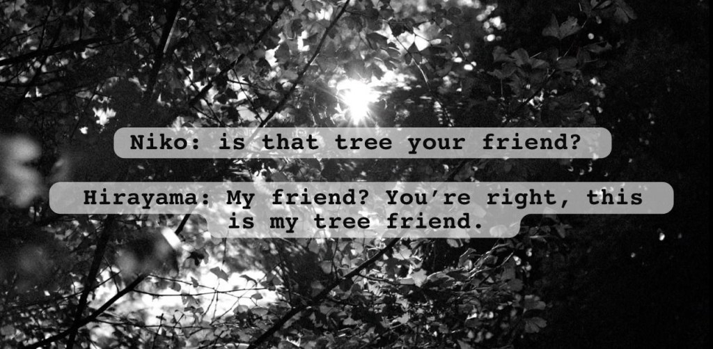 فهل يمكننا أن نمضي في هذه الحياة بأسلوب هيراياما في العيش؟ ذلك الرجل الذي يغتنم اللحظات البهيجة بطريقته الخاصة ويجد في عاديّة الأشياء روعتها بلا شروط بل يلقاها بوجهٍ طَلق وخاطرٍ شَرح، وكأي شخص لا تخلو حياته من مُنغصات الحياة، كان لهيراياما قَسمه الخاص منها، فلطالما كان للحياةِ إيقاعها الذي كلّما إرتفع طربًا يعودُ فيدنو شجنًا، في لحنٍ متوازنٍ مُستساغ.