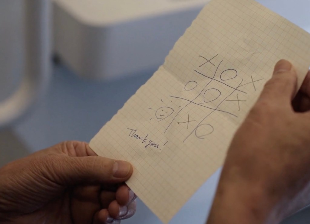 وفي يومٍ ما وبينما هو مُنهمك بإخلاصه المُعتاد في تنظيف إحدى دورات المياه، سقطت عيناه على ورقة أخفاها أحدهم بجانب المغسلة فتحها ليجد بداخلها لعبة X-O، ألقى بها بلا إكتراث في سلة المهملات مثل باقي المناديل والأوراق. بعد انتهائه من التنظيف وهو يهمُّ بالخروج، عاد مجددًا ليفتّش عن الورقة في السلة، تأملها مجددًا، ثم رسم علامة X وأعاد الورقة إلى مكانها. كانت هذه اللحظة بداية للعبة طرفها الآخر مجهول فكلما عَرج هيراياما لتنظيف هذه الحمامات، كان يجد علامة جديدة، امتدت اللعبة لأيام وانتهت بإمتنان مُتبادل رغم خسارة كليهما، كانت لعبة يجمع أطرافها بحثهم عن البهجة في عالم تحكمه الجدية والرتابة.